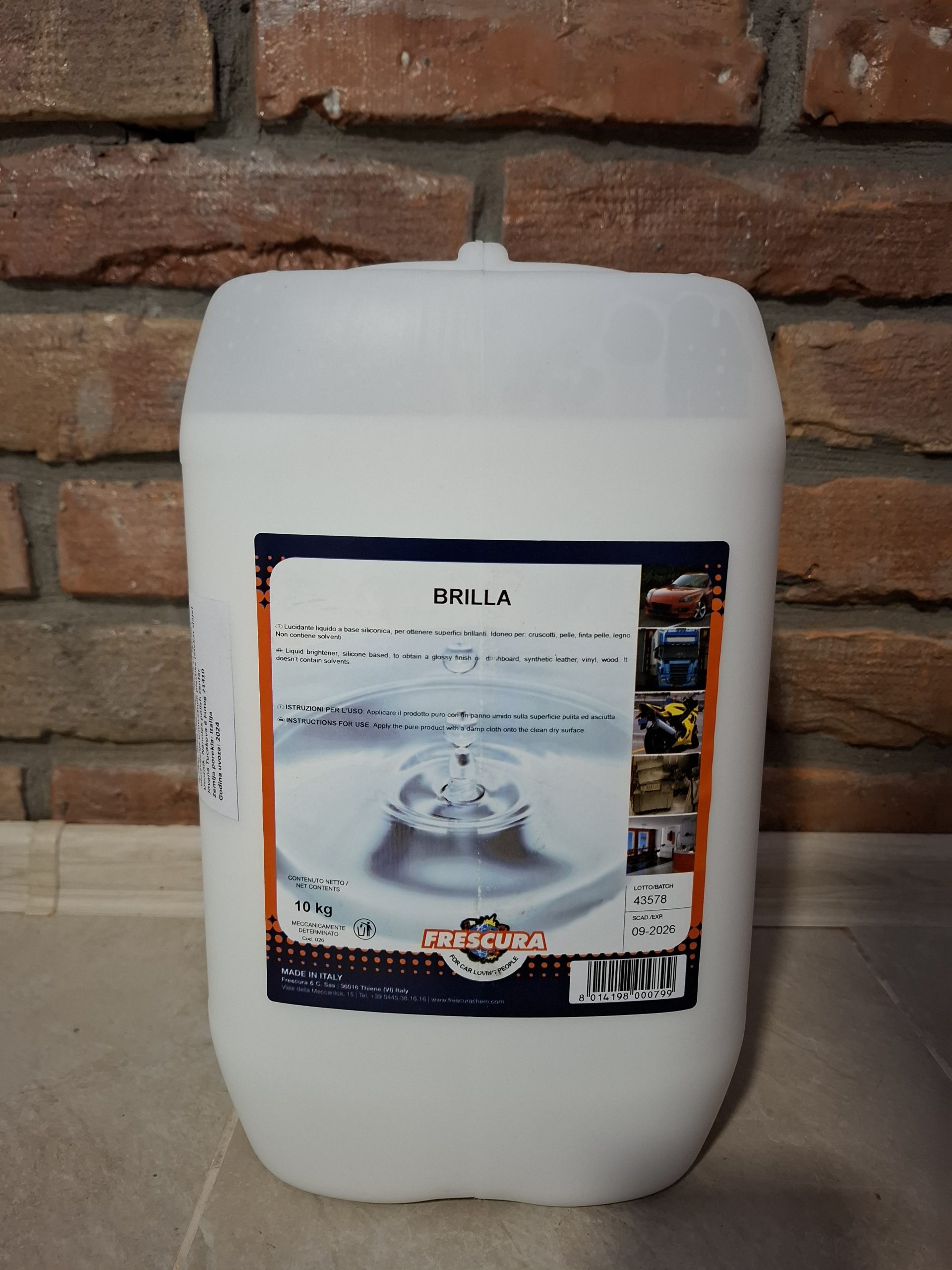 Brilla je gotova silikonska zaštita pogodna za instrument table i sve plastične delove u enterijeru automobila. Najdugotrajniji proizvod iz Frescurine linije za zaštitu i negu plastike. Osvežava i štiti plastiku od uv zračenja i istovremeno pruža izvrsna svojstva odbijanja prašine. Ne sadrži rastvarače.